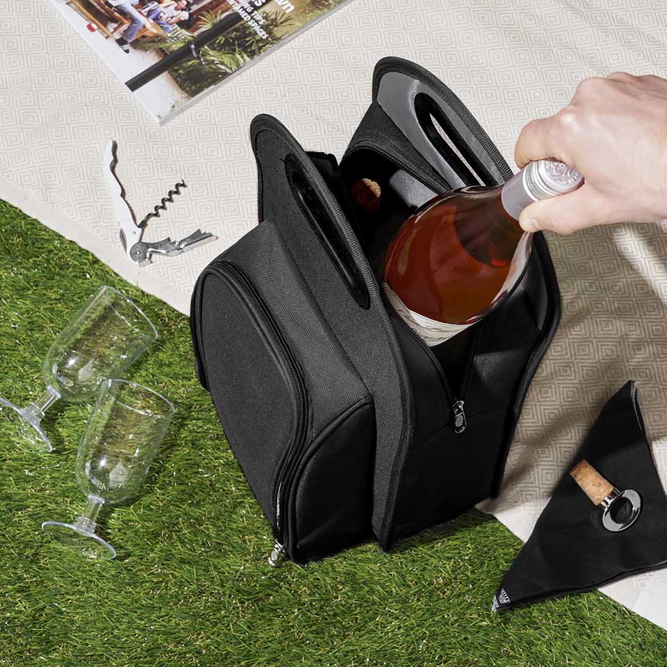 opener and a cork, and multiple napkins. Unlike ordinary coolers, the soft design makes this wine bag