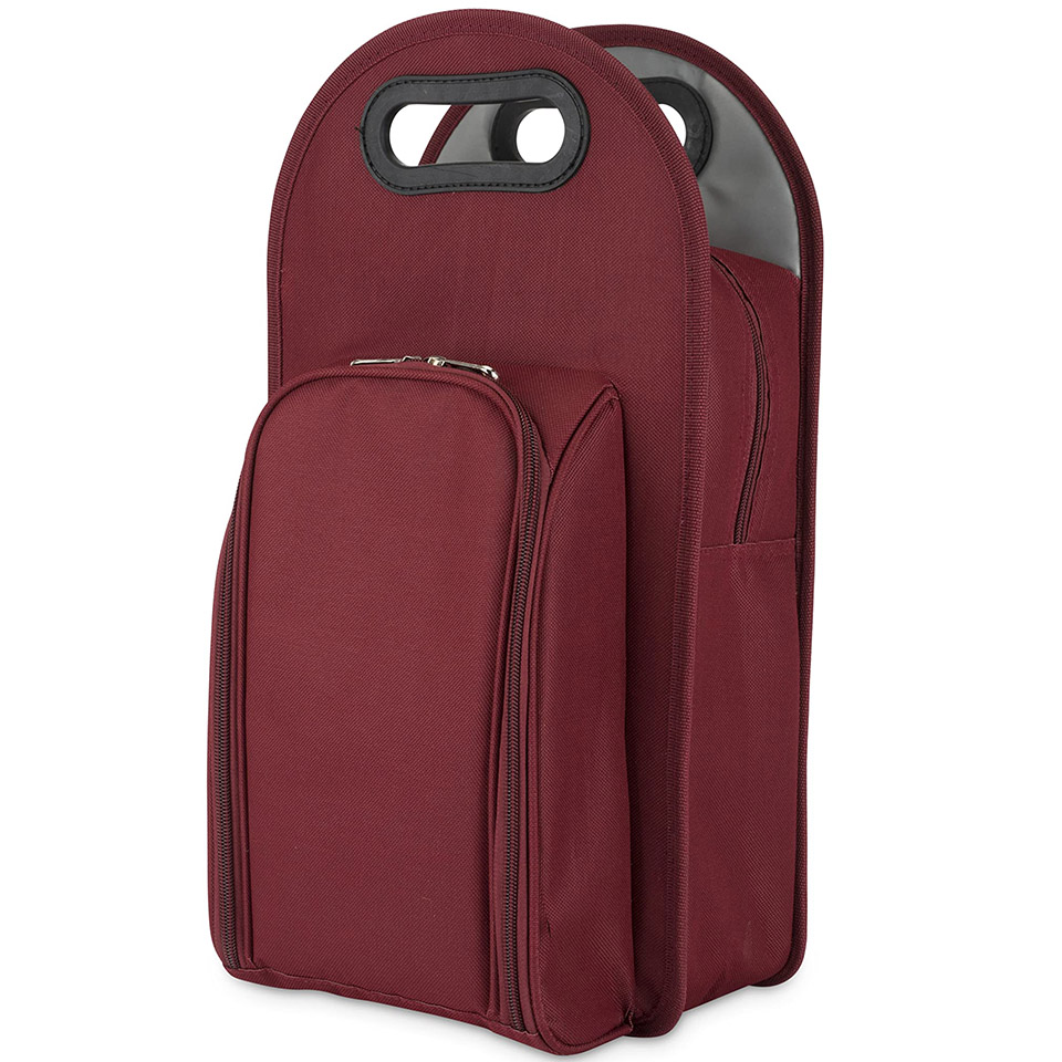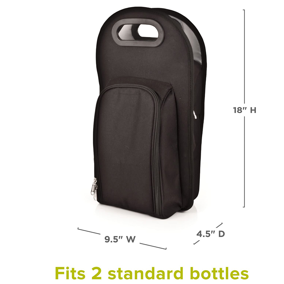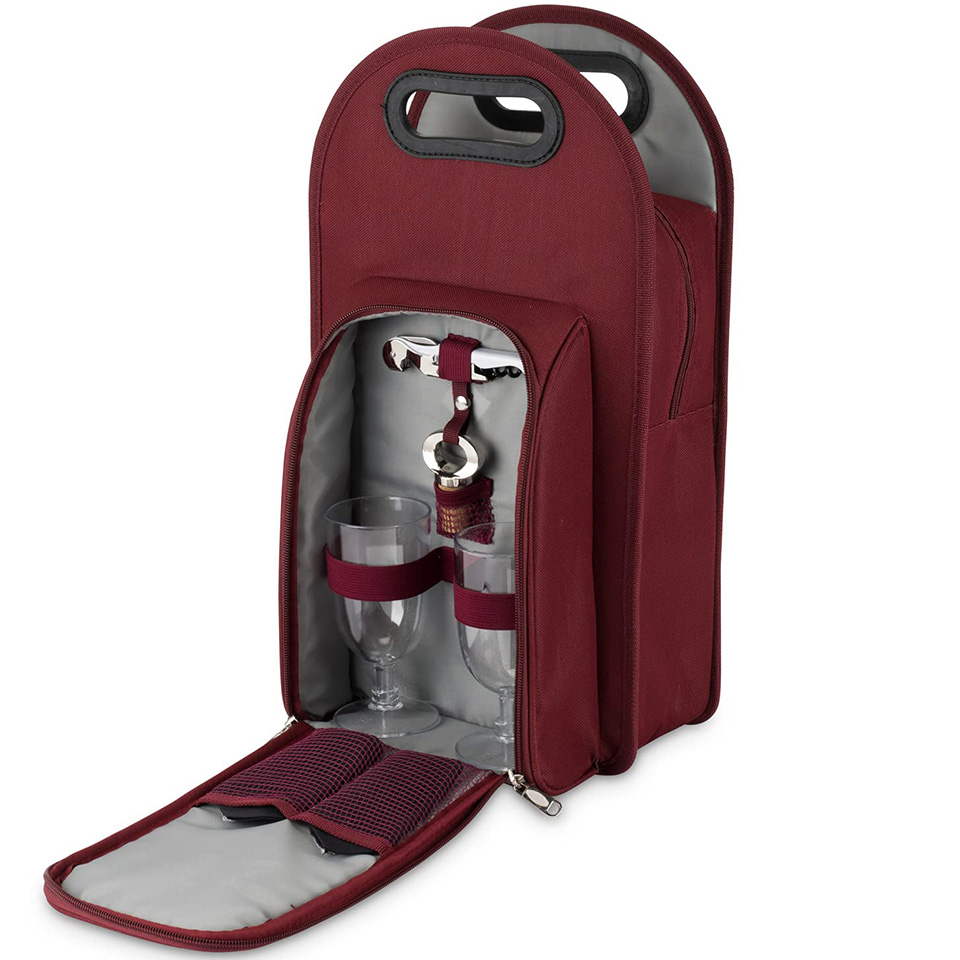 Insulated Wine Bag with Pockets for 2 Bottles Wine Tote Bag to Carry Wine Glasses&Corkscrew