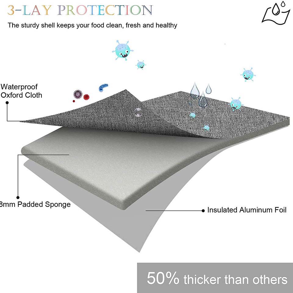 The top of the bag is made of PEVA material, for keeping your food fresh, suitable for fruits, snacks,drinks, etc The bottom of the bag is made of aluminum foil, for keeping your food warm, different temperatures can maintain 4-8 hours of insulation Size of lunch bag: 24 x 20 x14.5cm, the top of bag:20 x 14 x13cm, the bottom of bag:20 x 15 x 9cm , The length of shoulder strap is adjustable(MIN:29cm, MAX:55cm) The bag is convenient to carry to school, work, picnic, camping,fishing trip etc. Several pockets on front and back for something needed,like phone,tableware, transportation card,earphone,etc Made of high quality and strong oxford cloth, the bag is suitable for hand wash in cold water, NOTE:don't wash in hot water or machine wash