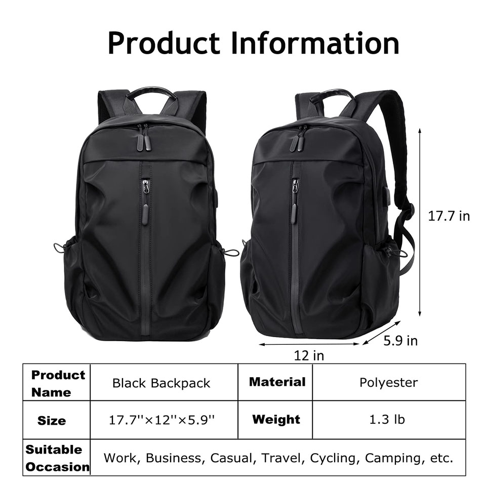 Product name:Laptop Backpack Material:Polyester Color:Black Size:15" x 7" x 19" (LxWxH)