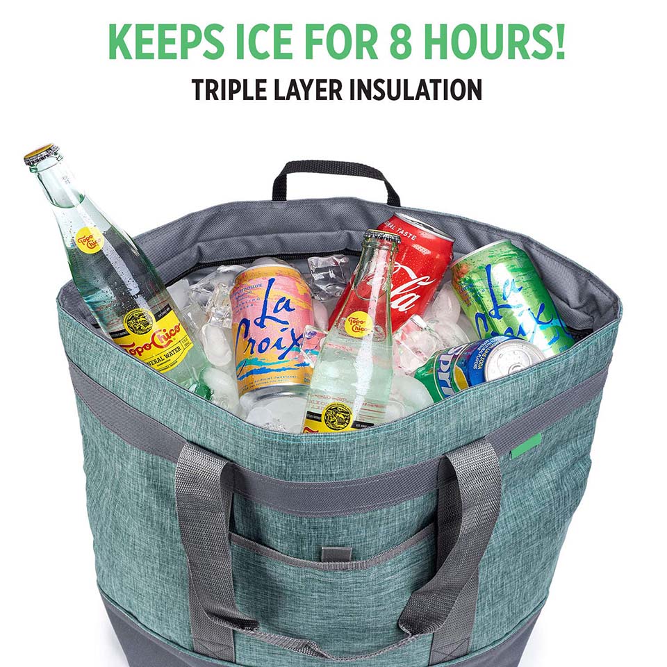KEEPS ICE FOR HOURS! – Thick Thermal Foam Insulation for superior cold retention. Perfect for frozen groceries, cold beverages, or hot takeout orders. Tested to keep ice frozen for 8+ hours when zipped. EXTRA LARGE 10 Gallon Capacity - 22" x 17" x 8". For large grocery orders, day trips to the beach, family picnics, and tailgating. LEAK PROOF LINING – Waterproof Lining is fully sealed and guaranteed not the leak.