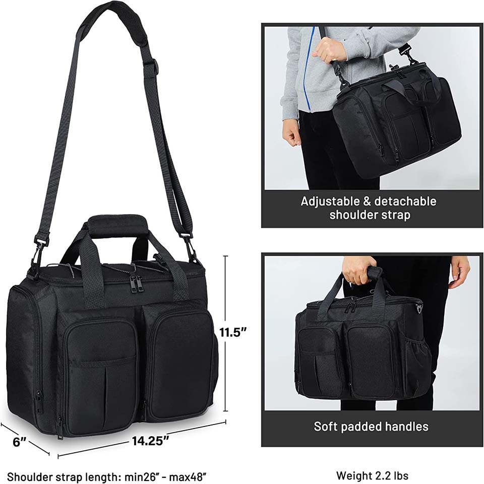 Dimensions: 12" (L) x 7" (W) x 9" (H) YKK Zippers Ultra-Strong Ripstop Fabric Metal Hardware Extra Thick PEVA Inner Lining EPA foam Insulation Seatbelt Webbing Handle and Strap