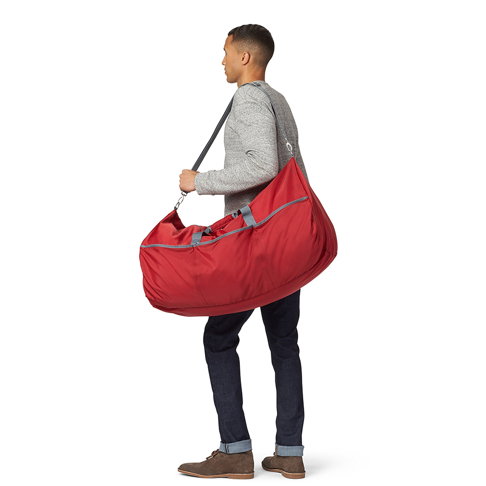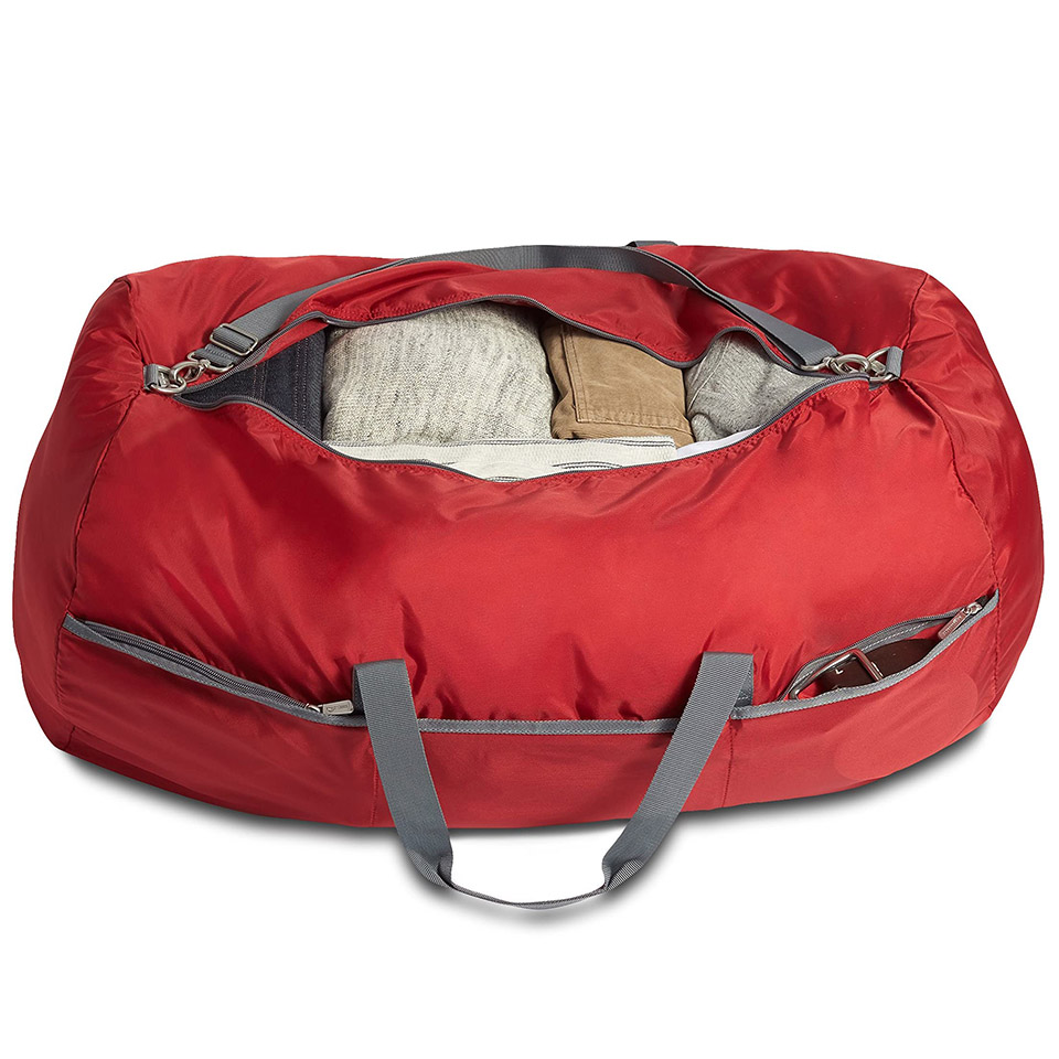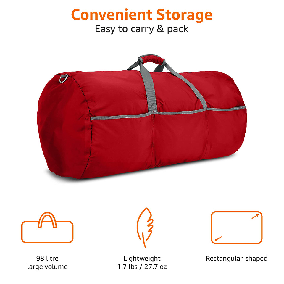 Large rectangular duffel bag with a roomy interior (over 6,000+ cubic inches); great for travel or storage
