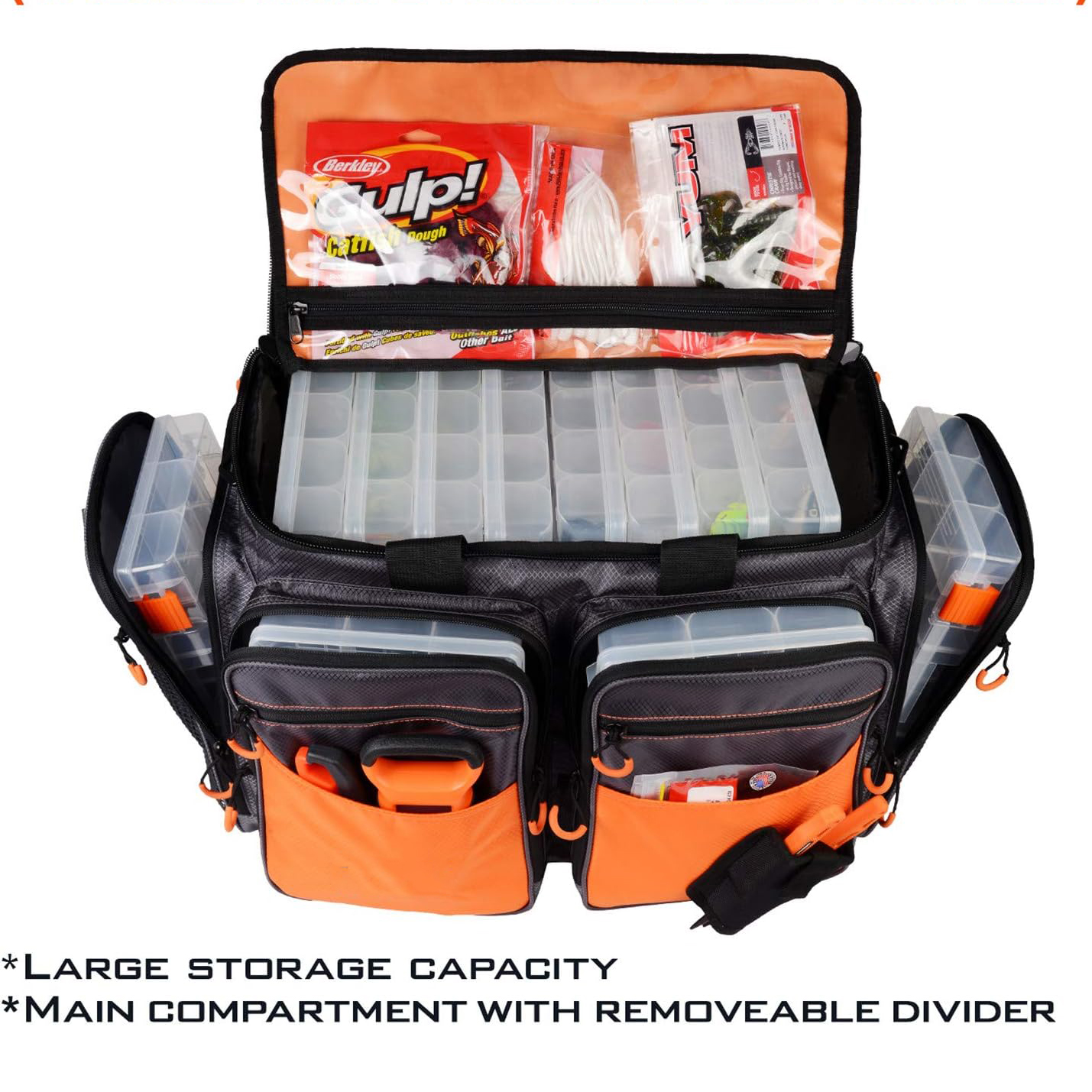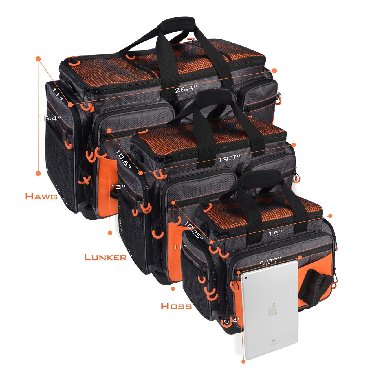 Product name:fishing bag Material:600D Nylon Color:Orange Size: 12.5 x 10 x 5inches (LxWxH)