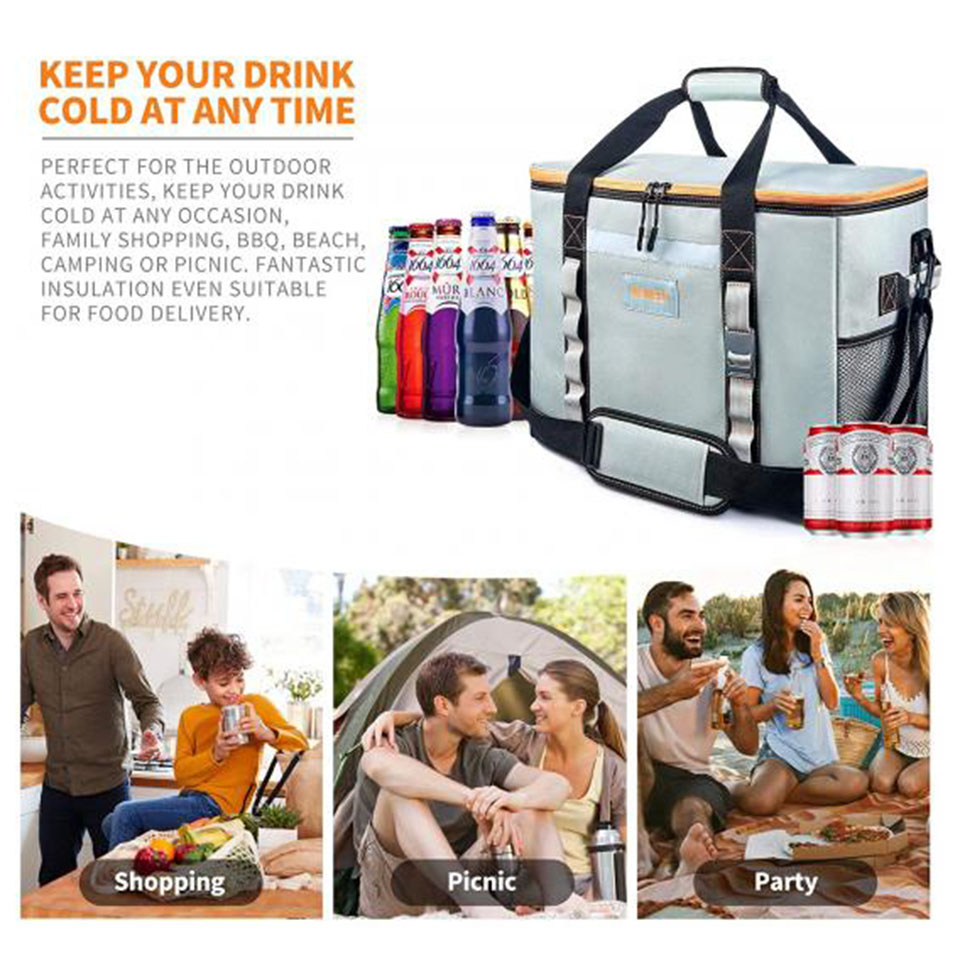 Brand Name: chaumetbag Material: Polyester Type: insulated Use: Food Feature: Waterproof, insulated, Thermal Pattern Type: customized Product name: cooler bag Color: black,grey Size: 23.7 x 14.5 x 14.2 inches Logo: Customized Capacity: 80L MOQ: 300 Pcs Usage: Carry Food With Cup Holders Weight: 0.58kg Sample: 5-7 Days Send OEM/ODM: Accepable