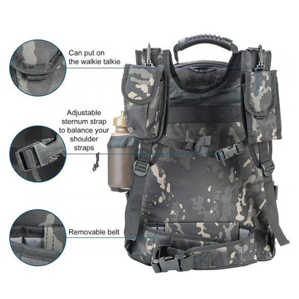 Feature: Waterproof Brand Name: CM Main Material: Polyester Lining Material: Polyester Closure Type: Zipper Handle/Strap Type: Soft Handle Interior: Interior Compartment Carrying System: Air Cushion Belt Product name: Military Tactical Backpack Color: Customized Color Logo: Accept Customized Logo Material: Oxford Fabric Size: 57*44*44cm MOQ: 500 Pcs OEM/ODM: Acceptable Usage: Outdoor Activity Gender: Unisex