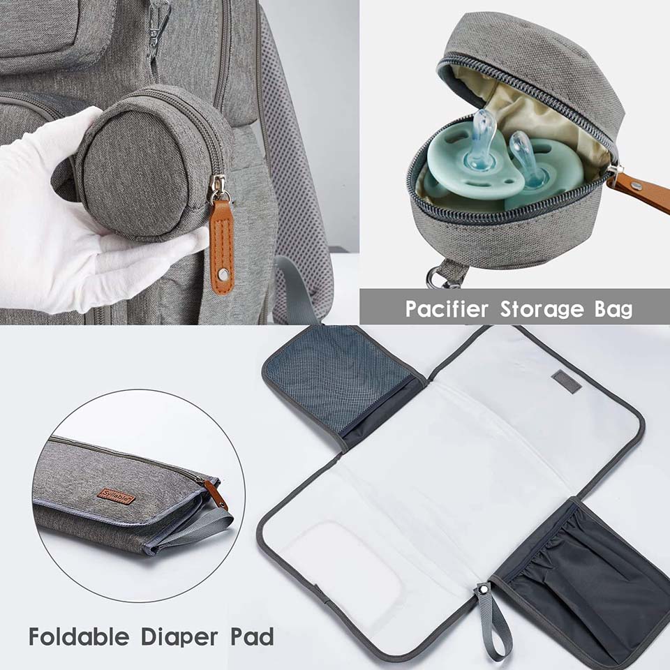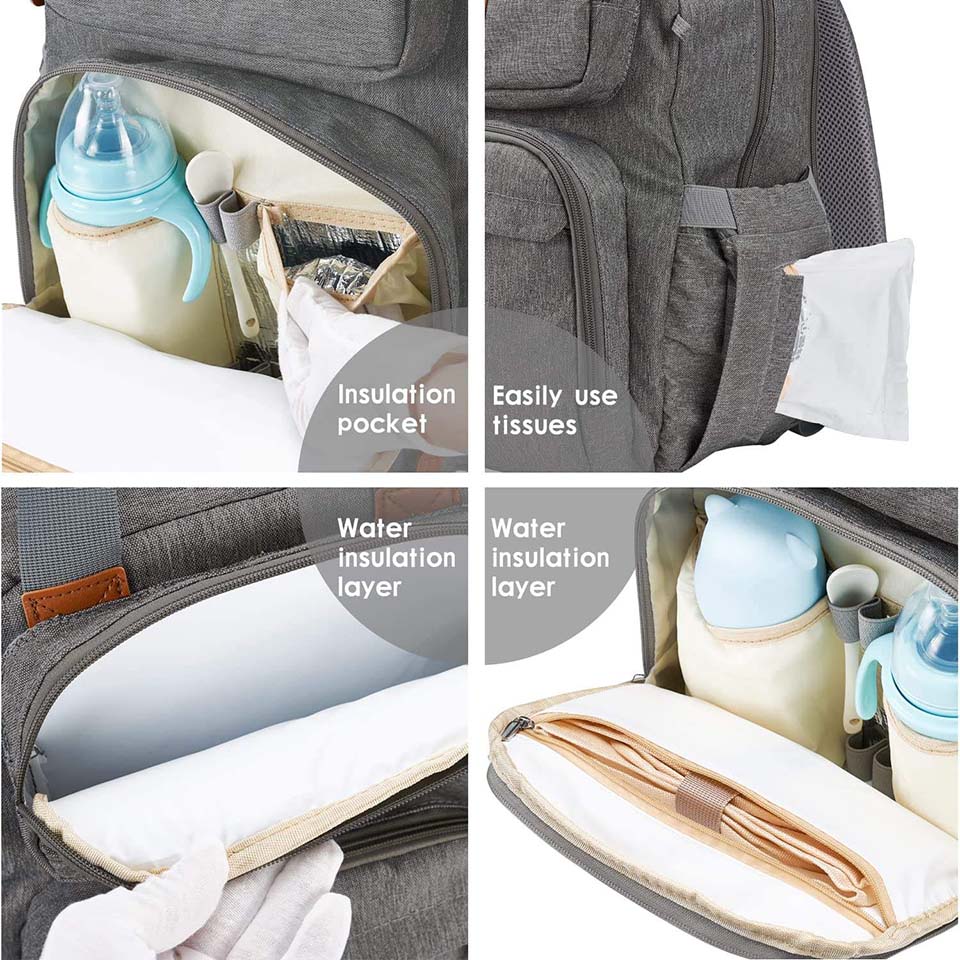 Our diaper backpacks are of the features of lightweight, durable and waterproof with changing pad andhandles. Using insulated material to keep the temperature of the baby bottle store a lot of baby products, and easily take out the diaper from the diaper bag