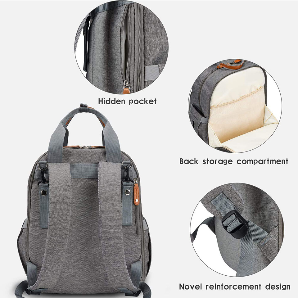Pattern Type: grey Style: Single Package Material: Polyester, nylon 210D lining Brand Name: customized Feature: with USB, Anti-Theft Description: diaper bed bag Color: customized Dimension: 11.8*7.8*16.5inchor Customized Certificate: BSCI,Sedex,TUV,ISO9001 Sample time: 5-7 Days Sample charges: USD50 Warranty: 1 year against defect of materials and manufacturing OEM/ODM: Availalble Logo: Accept Customized Logo