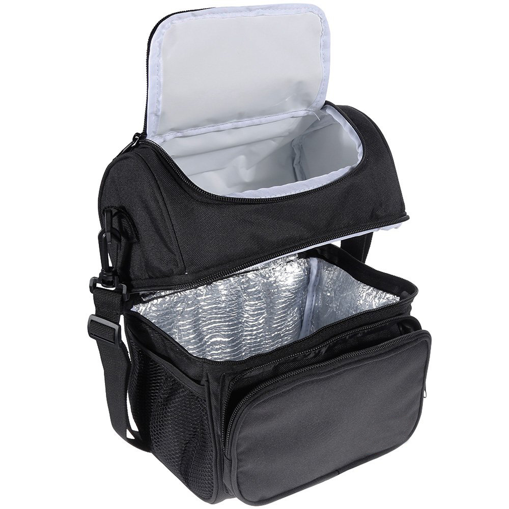 Product name:Cooler Lunch Bag Usage:Food Storage Color:Black Size:12'' (L) x 7'' (W) x 9'' (H)
