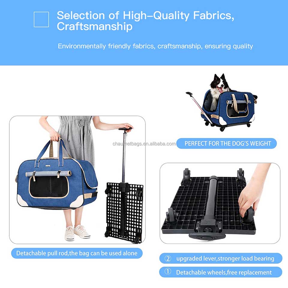 Quick Details Place of Origin: Fujian, China Brand Name: Chaumetbag Feature: Sustainable Application: Small Animals Material: polyester Product name: Pet Rolling Carrier with Wheels Color: Customized Sample time: 5-7 Days Sample charges: USD100 OEM/ODM: Acceptable Function: travel Usage: Outdoor Style: Fashion Type: Pet Training Products OEM & ODM: Accepable