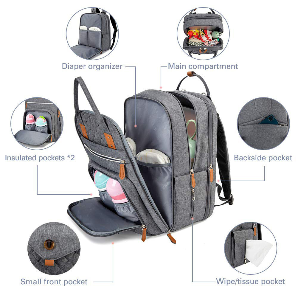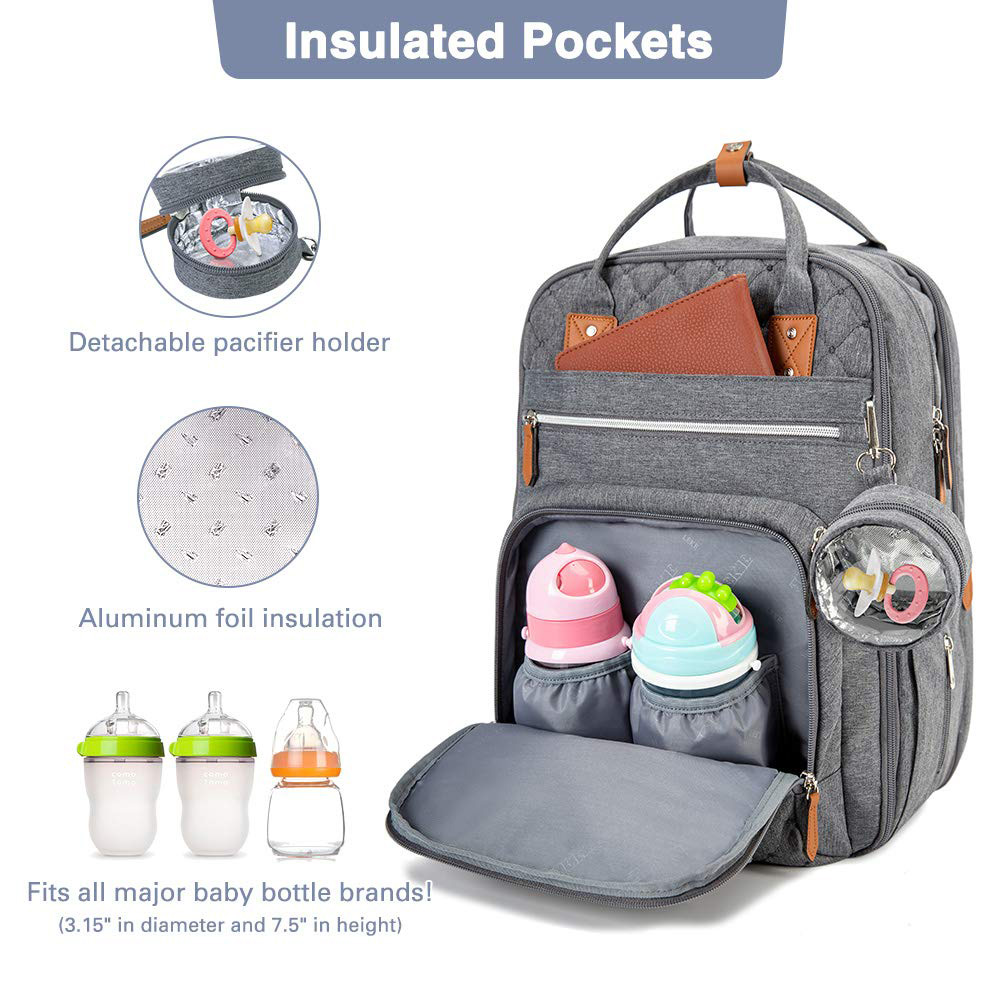 Our diaper backpacks are of the features of lightweight, durable and waterproof with changing pad andhandles. Using insulated material to keep the temperature of the baby bottle store a lot of baby products, and easily take out the diaper from the diaper bag