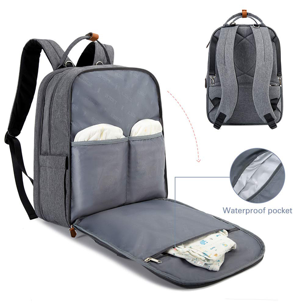 Pattern Type: grey Style: Single Package Material: Polyester, nylon 210D lining Brand Name: customized Feature: with USB, Anti-Theft Description: diaper bed bag Color: customized Dimension: 11.8*7.8*16.5inchor Customized Certificate: BSCI,Sedex,TUV,ISO9001 Sample time: 5-7 Days Sample charges: USD50 Warranty: 1 year against defect of materials and manufacturing OEM/ODM: Availalble Logo: Accept Customized Logo