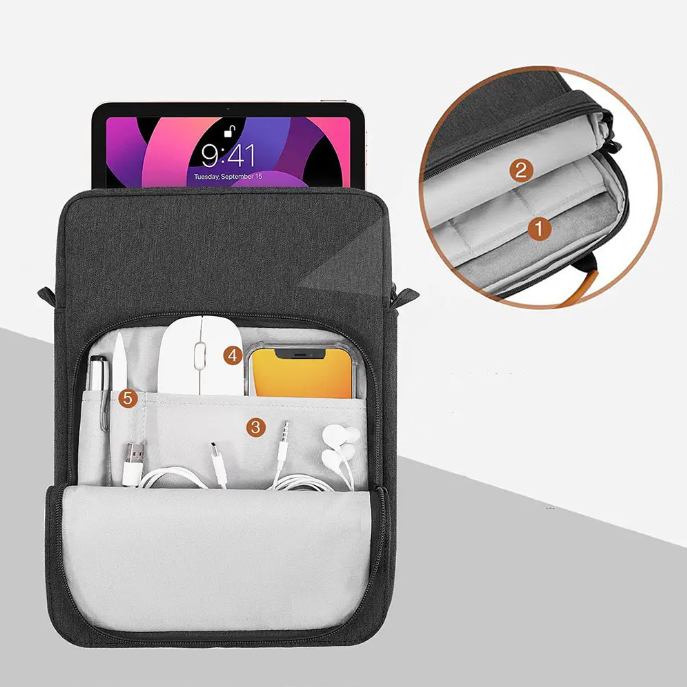 Essential details Application: iPad Bag Usage: Travel, Caring, Protective, Storage Material: Polyester Size: 31 x 25 x 5 cm Color: Customized Certificates: BSCI,Sedex,TUV,ISO9001 Sample time: 5-7 Days Warranty: 1 year against defect of materials and manufacturing OEM/ODM: Acceptable MOQ: 500pcs