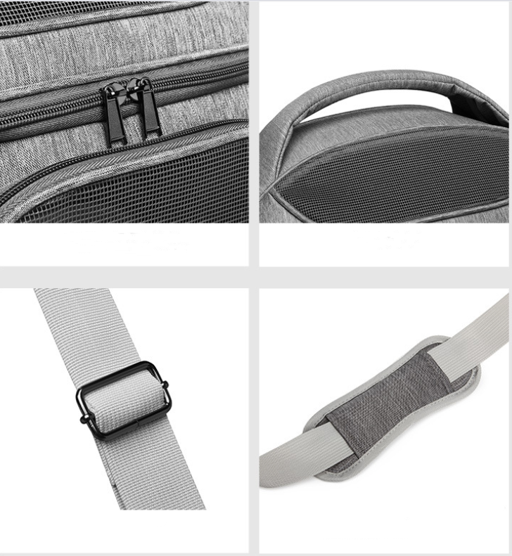This pet carrier provides two connecting loop handles for balanced carrying as a dual seat belt or luggage strap to secure transport.And it is easy to carry and store, which has a padded shoulder strap and handles.