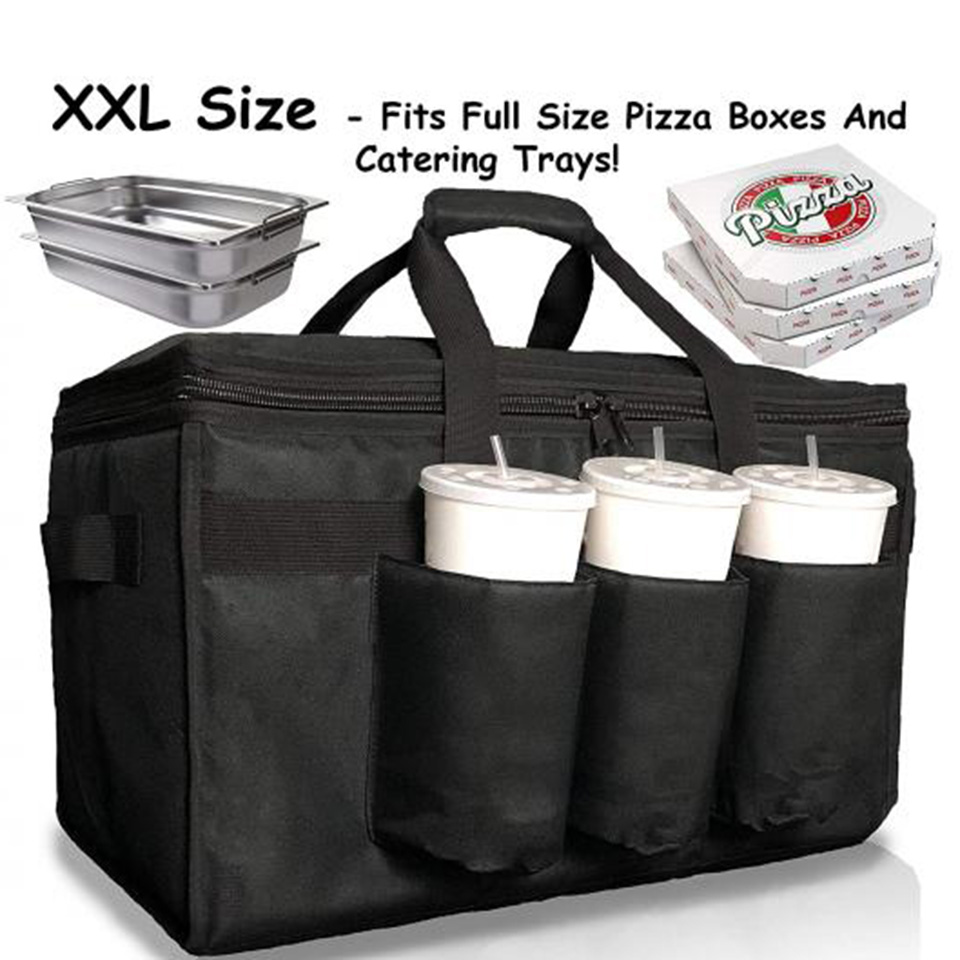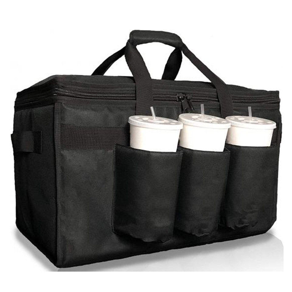 New Fashion Popular Insulated Pizza Bag Food Delivery Thermal with Cup Holders Drink Carriers