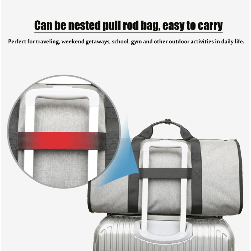 Essential details Application: Weekender travel bag / Carry-on bag / Weekender overnight bag / Gym bag / Business travel bag / Duffle bag Material: Polyester Size: 20.5"L×9.5"W×13"H/ 10"L×9"H/ 7"L×4.5"H Or Customized Color: Customized Certificates: BSCI,Sedex,TUV,ISO9001 Sample time: 5-7 Days Warranty: 1 year against defect of materials and manufacturing OEM/ODM: Acceptable MOQ: 500pcs