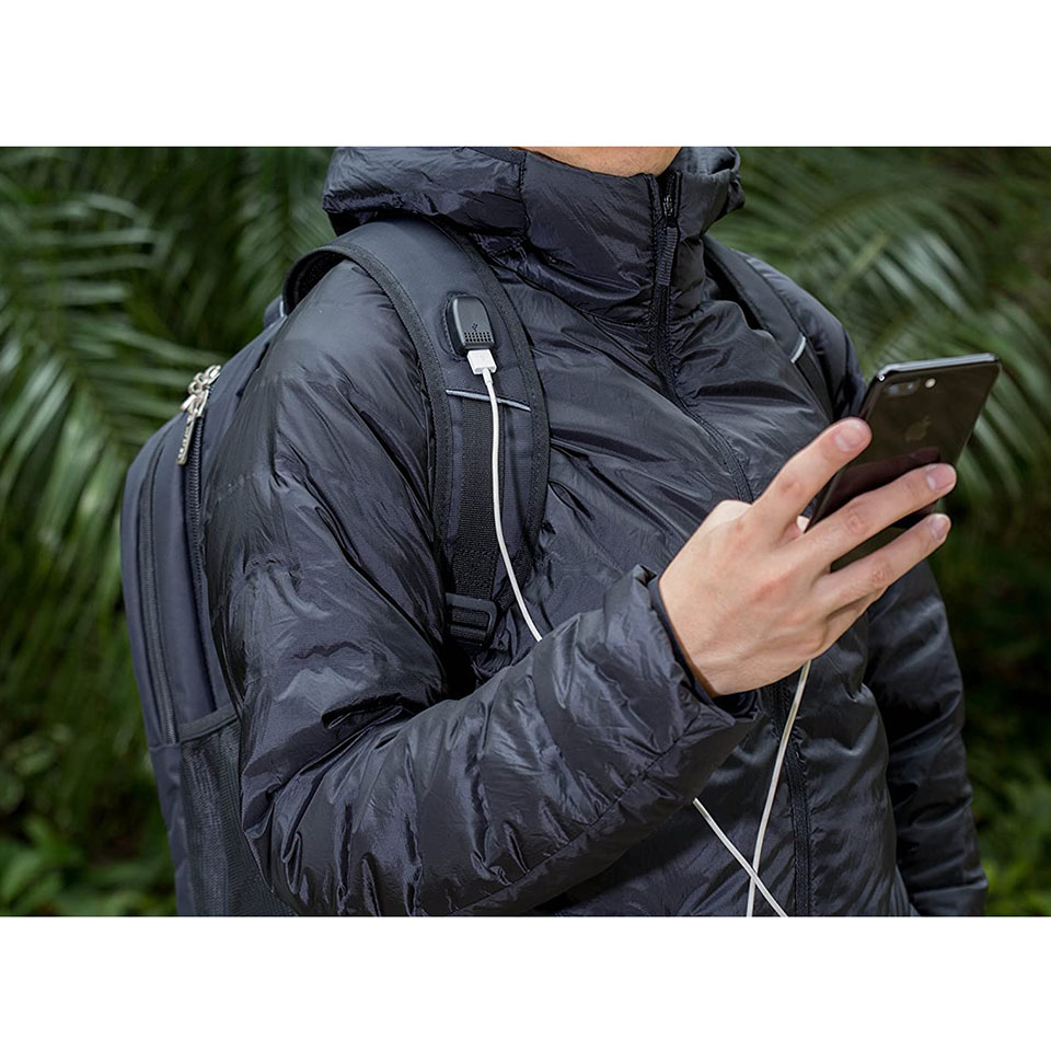 * There is a USB output port on the exterior of the backpack so you can easily charge your device without opening up the backpack.