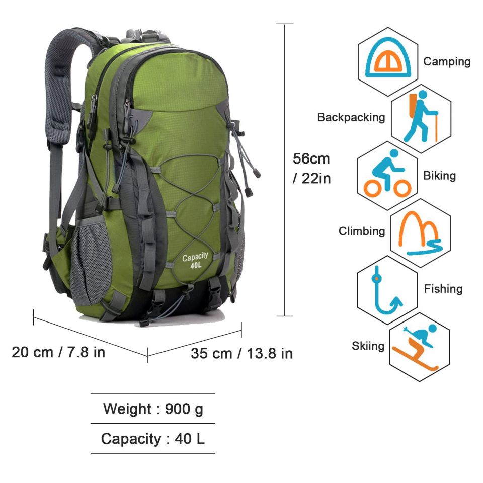 Essential details Application: Outdoor, Sport, Travel, Hiking, Camping Material: Polyester Capacity: 40L Color: Customized Certificates: BSCI,Sedex,TUV,ISO9001 Sample time: 5-7 Days Warranty: 1 year against defect of materials and manufacturing OEM/ODM: Acceptable MOQ: 500pcs