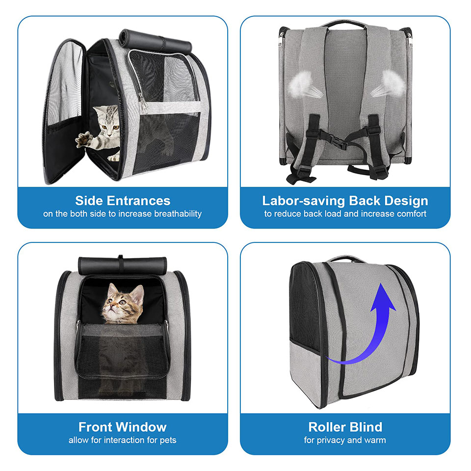 • Whether you need a cat backpack carrier or a dog backpack carrier, this pet carrier backpack will keep your fur friend safely inside, allowing you to focus on managing your trip. • The leash tether could be attached to your pet to prevent escape if you want to leave the top open for your pet to stick their head out. • The high grade scratch-resistant polyester and reinforced metal zippers serve as another barrier to prevent escape, so give your pet ultimate protection.