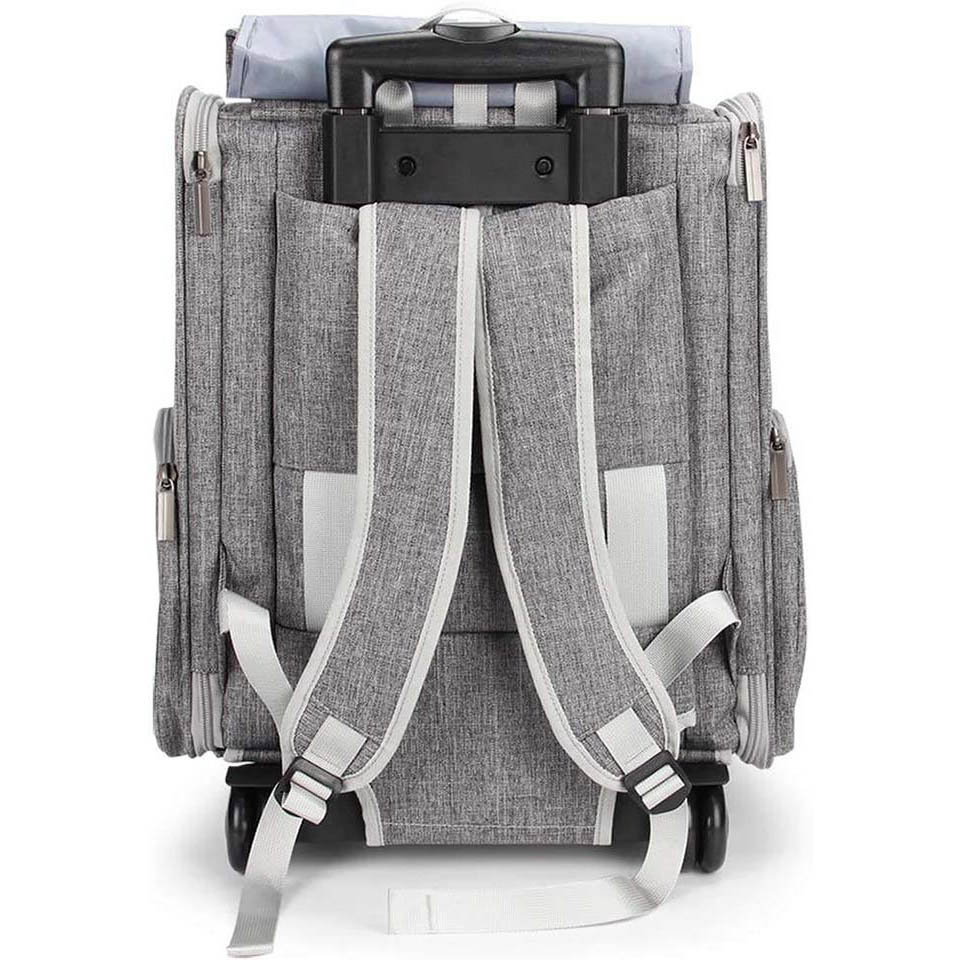 also designed with a strap storage layer to ensure that straps will not get stuck in the wheel when it's used as rolling