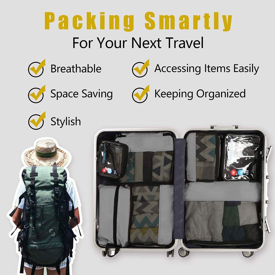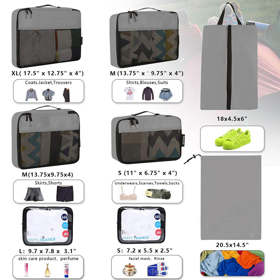 Portable 8 Set Packing Cubes Luggage Packing Organizer bag for Travel