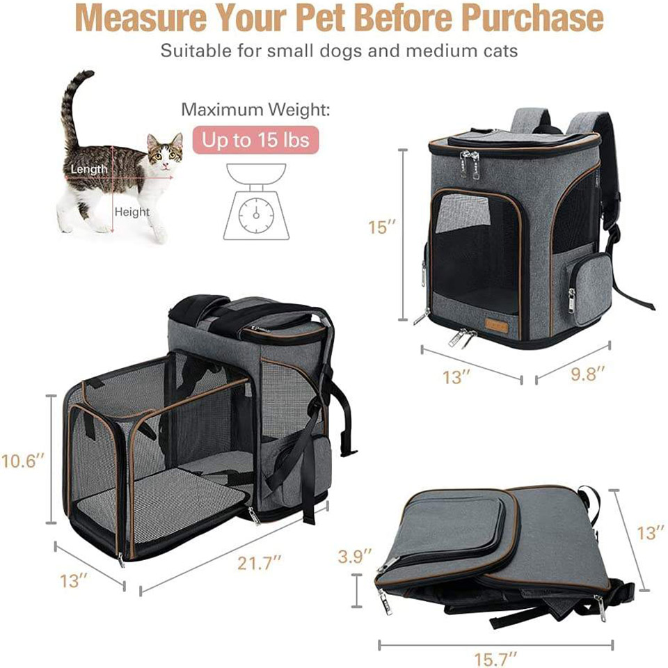 * 【Larger Size than Any Others】- Expanded size: 21.7" x 13 x 15 inch, unexpanded size: 13'' x 9.8'' x 15'. Fits the pets under 15