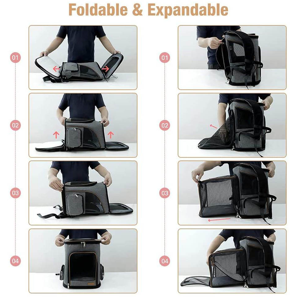 Portable expandable Pet Carrier Backpack Breathable Carry Cat Dog Puppy Travel Backpack for Outdoors with Scratch resistant