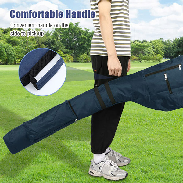 Premium Material and Humanized Design 1. Made of nylon fabric, the dual-density padded interior ensures a soft feel. The zipper closure prevents damp air and rain from damaging the club. 2. The bottom of the golf gun bag is made of non-slip material to avoid slipping. Padded shoulder straps provide extra comfort, and convenient side handles make it easy to lift or put down. 3. Large Capacity. Easily accommodate 5-10 golf clubs.4. Padded Shoulder Strap. Soft, comfortable, and less stressful on the shoulders. 5. Large Capacity Pocket. Pocket for balls, tees, and divot tools. |