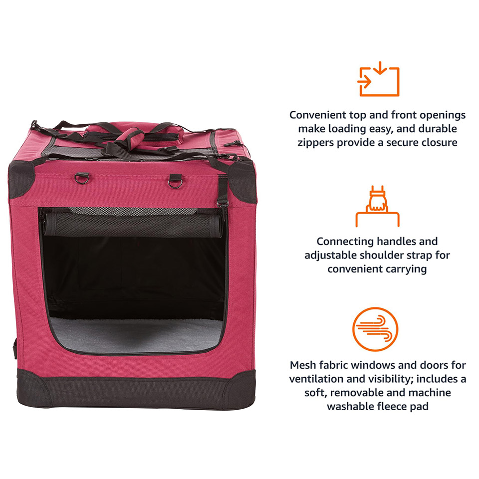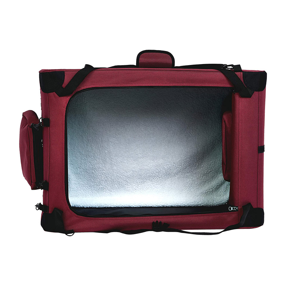 Multiple screened panels for ventilation and visibility; machine-washable soft fleece pad for comfort; handy pockets on top and sides for storing treats, toys, and more