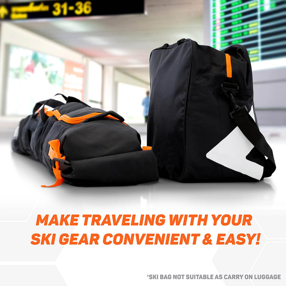 Unpadded Ski Bag and Ski Boot Bag Combo for Air Travel. Ski bags pack for snow gear and equipment travel luggage. Comfortably fit cross country, downhill, boots, helmet, snow gear, and accessories.