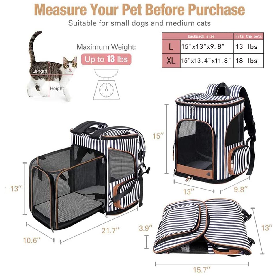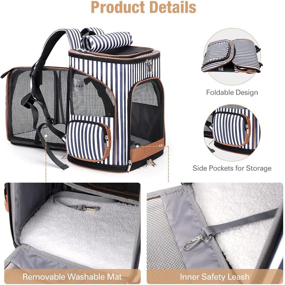 * 【Premium and Functional】- Made of quality polyester and anti-scratch mesh, this expandable cat backpack is sturdy and safe for