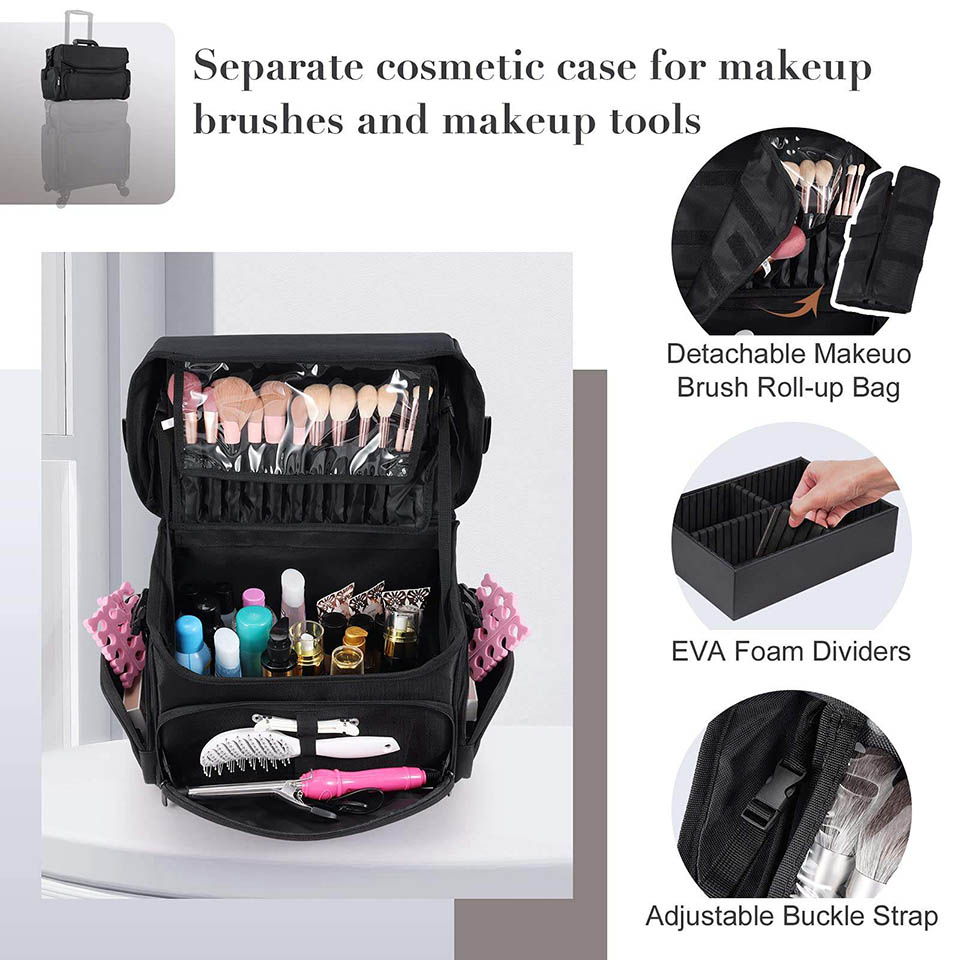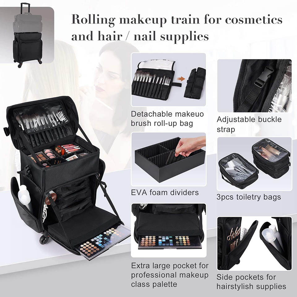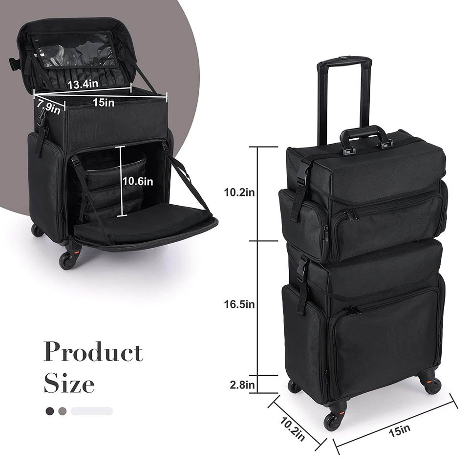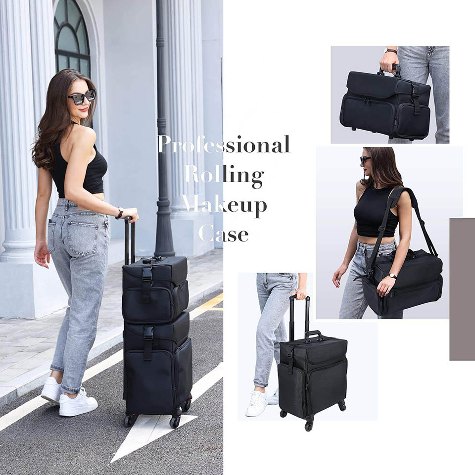 * 【Professional Rolling Makeup Case】: Classic black 2 in 1 makeup case comes with 1 rolling travel case and 1 portable train case, it is perfect for makeup artist, barbers, Semi-permanent Tattoo artist (from beginners to PRO ) to organize or storage