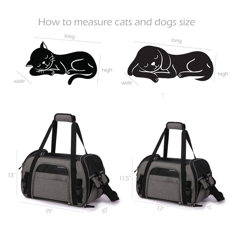 * Size: 17" L x 9" W x 11.5" H. Compliant with most Airlines and best suited for kittens, puppies, teacup breeds and ferrent