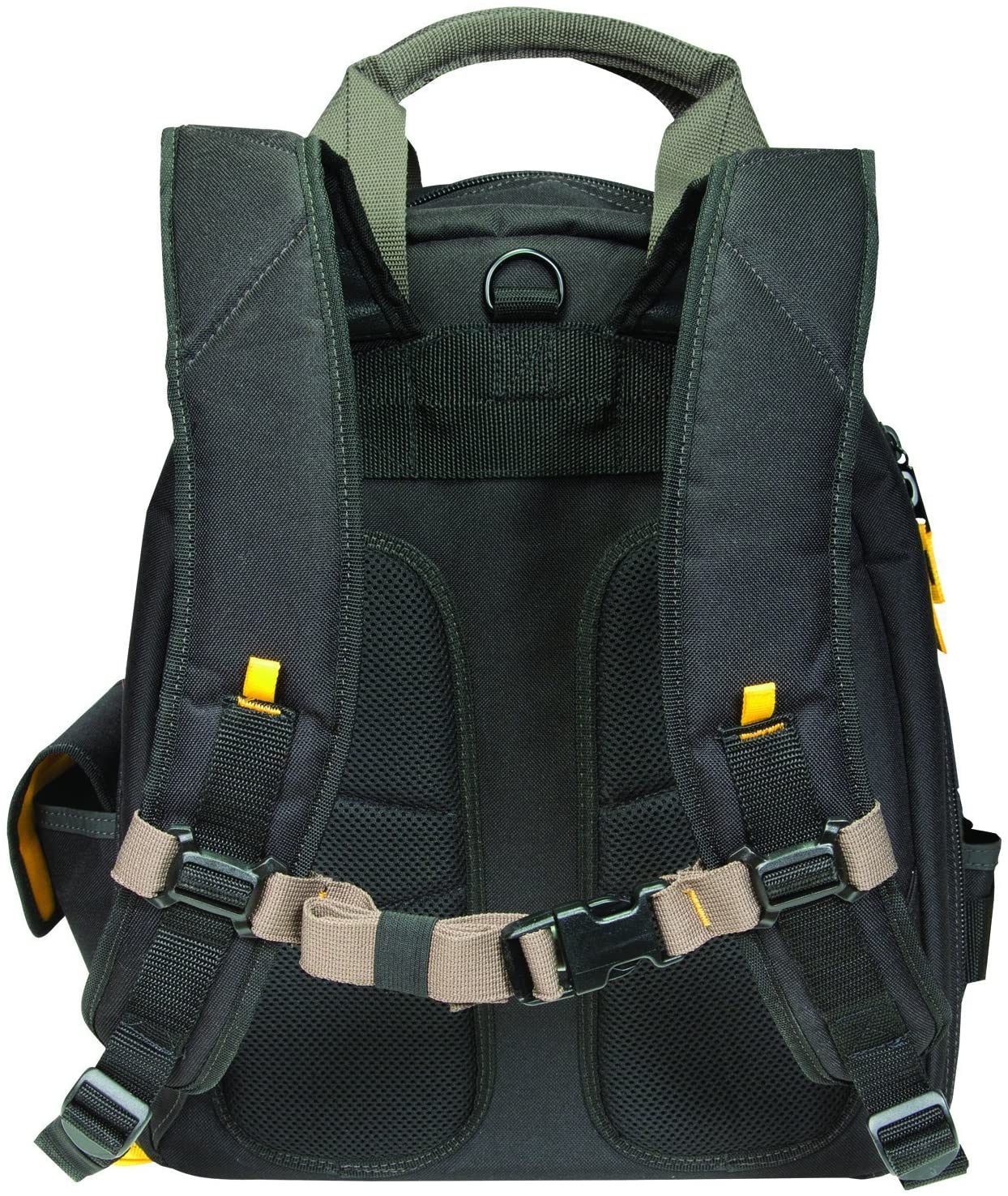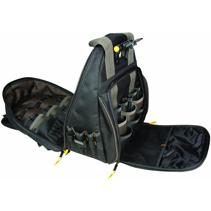 53 POCKETS FOR EASY ORGANIZATION: This durable tool backpack features 28 tool pockets, 14 accessory bit pockets and 11 multi-use pockets for your favorite tools, parts and accessories. Dual compartment design for better-organized tool storage.