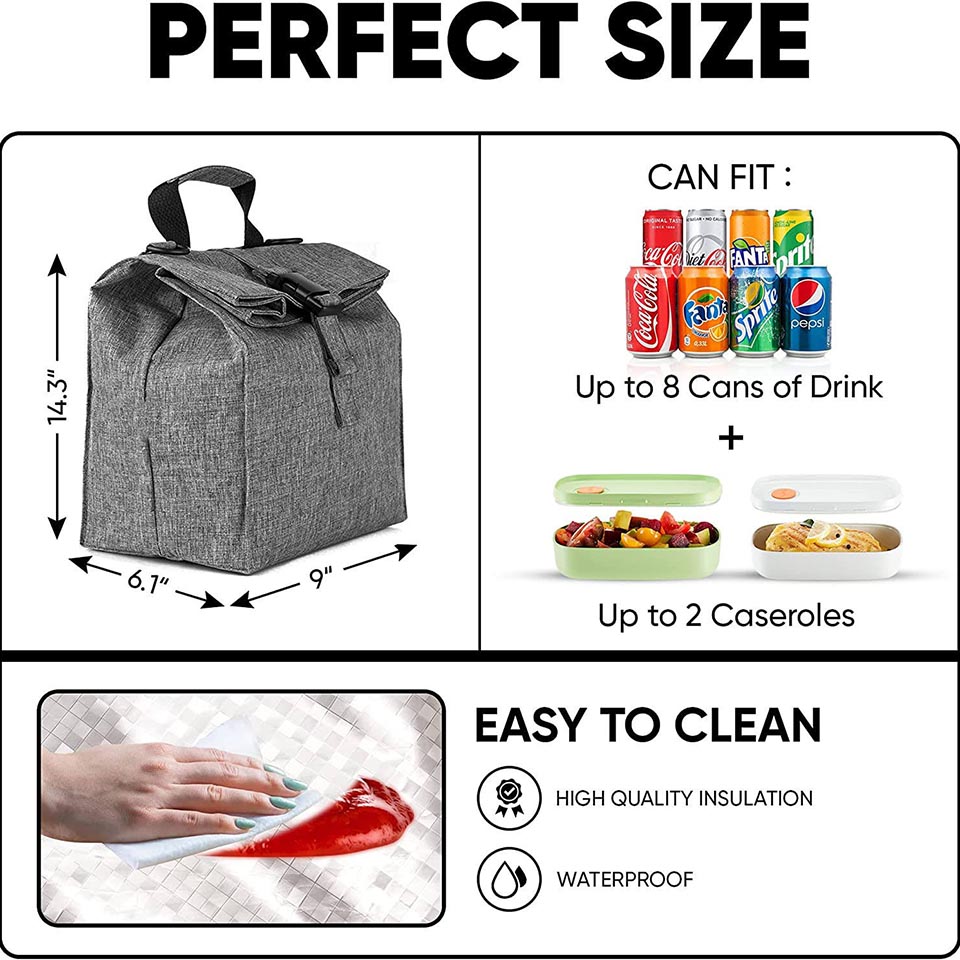 * [BALORAY LUNCH BAG]This lunch bag can be used as lunch bag, picnic bag, sundry bag, suitable for working women.Warm note: Traditional stitching process, so the inside insulated liner is water resistant, but not totally leakproof. * [Standard lunch bag Size]:10x 6.6x 8.5 inch.This lunch bag looks small but with large capacity, it could perfectly fit your lunch box, snacks, and even protein shake bottle.This is the honest feedback from our customers. *[ High Quality Material]:Durable oxford cloth and nontoxic aluminum foil( BPA FREE), perfect to pack your food and lunch containers.We have upgraded Insulation lined interior based on your needs. It will keep your food cold or warm for about 4 hours. ★THERMAL INSULATED: Lining with thick aluminum foil, interior padded with 5mm thicken insulation pearl foam, protect with 300d water resistant matte fabric, lunch box is designed with triple Insulated to keep food stay cold/warm/fresh for hours, perfect for on-the-go meals, picnics, road trips, lunch at the office, the school, the beach and more! ★SPACIOUS & MULTI COMPARTMENTS: Is designed for maximum storage efficiency, 1 main zipped compartment, 1 preposition velcro pocket, 1 practical zip pocket, not only provides you with plenty of space to pack all of your food and snacks you need whole day, as well as pack your keys, cards, phone chargers, napkins, water bottles, utensils, gum or other small stuffs you daily needs. ★THREE CARRYING OPTIONS: reusable lunch box features durable handle and comes with a removable and adjustable shoulder strap which can be adjusted from 18" to 28" when carrying, providing three options to carry: shoulder bag, oblique bag or fashion hand bag. Padded soft strap ensures comfortable carry. Wide opening design makes it convenient to fill and take food. Modern and lightweight design is convenient to be used as your lunch bag, cooler bag, picnic bag, sundry bag or shopping bag.