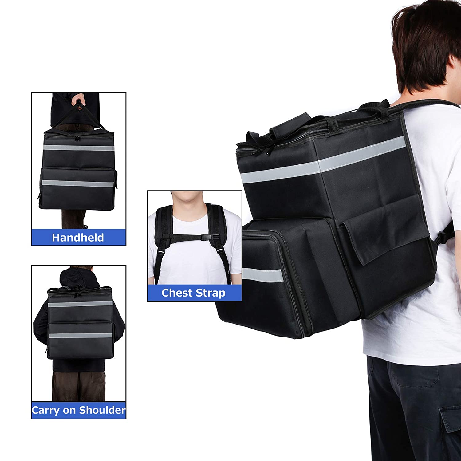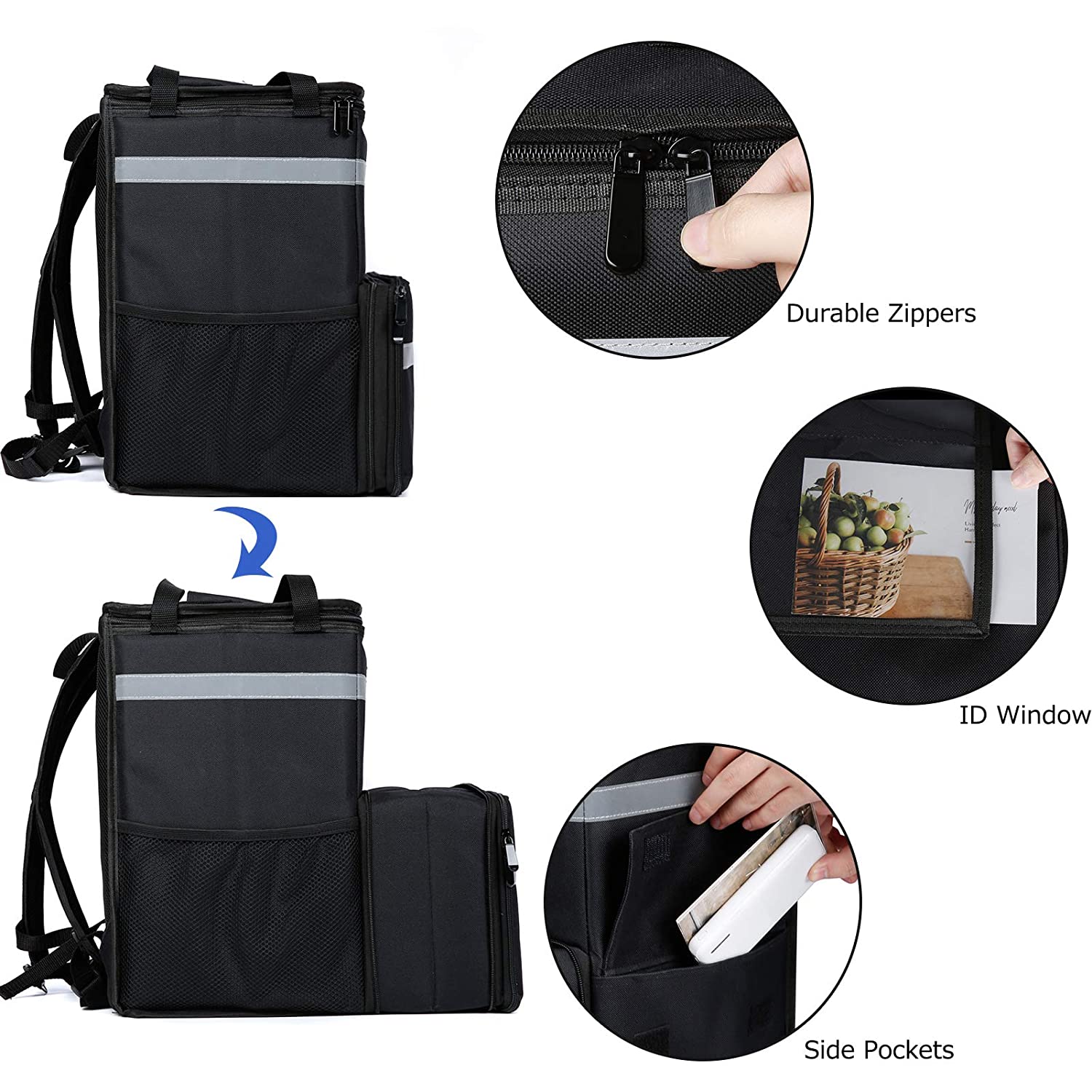 Thermal Pizza Delivery Backpack Insulated Thermal Disposable Food Delivery Bag with Pockets and Three Dividers