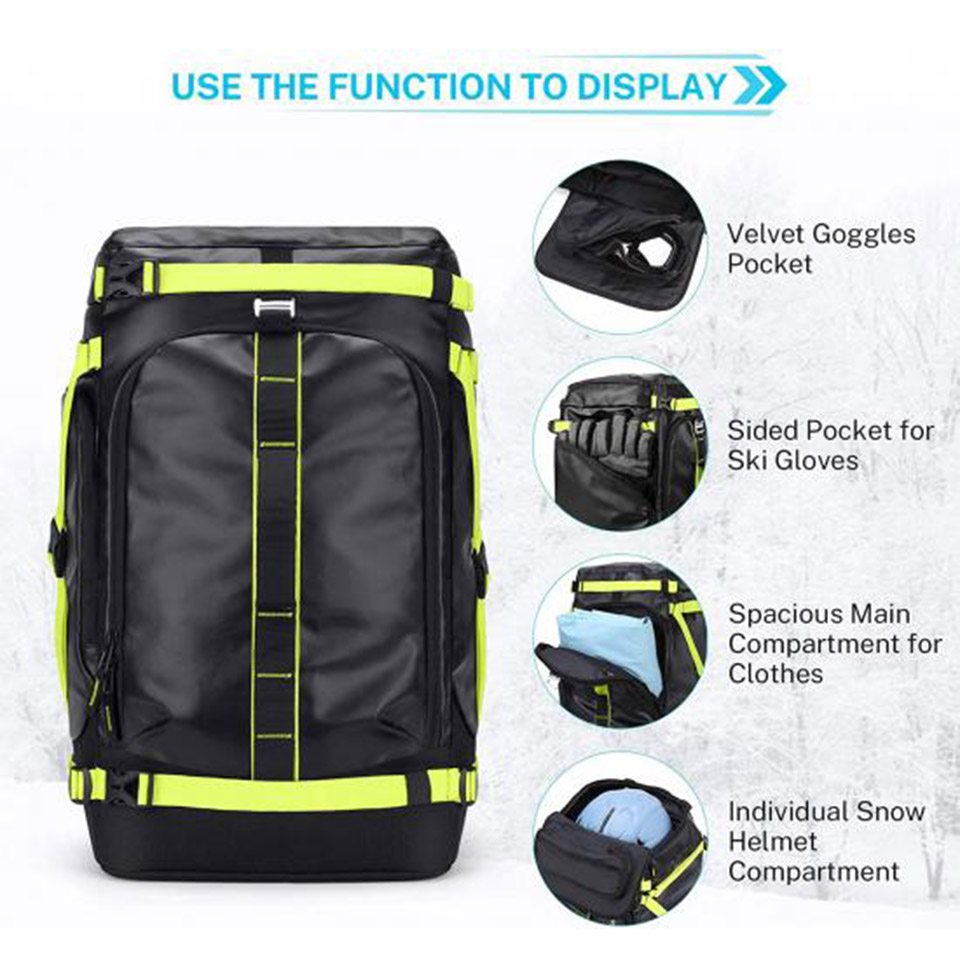 Product name:Ski Boot Travel bag BackpackColor:CustomizedMaterial:1050D nylonLogo:CustomizedSize:16.54*13.78*15.75 inchesMOQ:300pcsSample time:7-10 DaysCertificate:BSCI, ISO9001OEM/ODM:AcceptabeFunction:Ski Accessories Packing