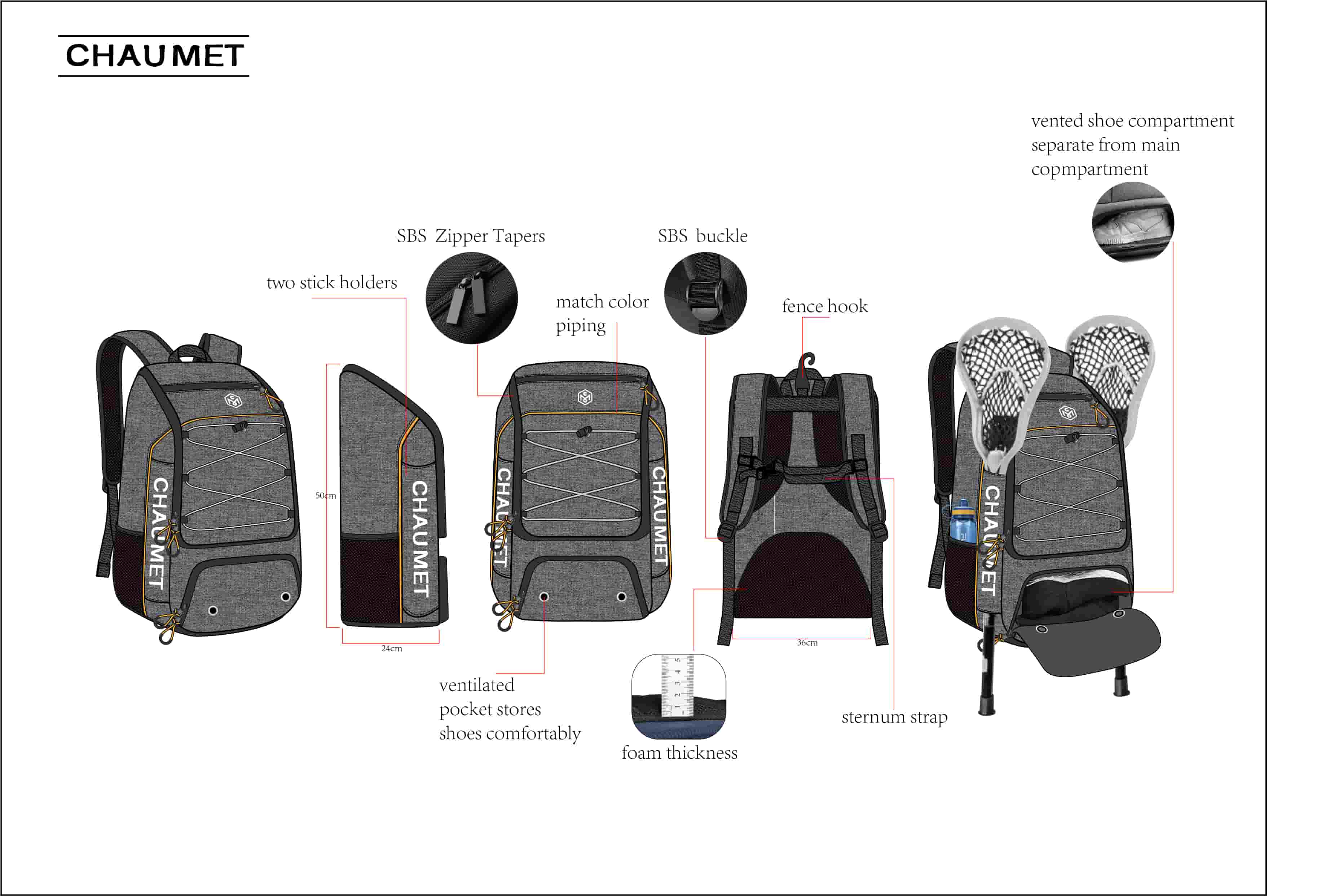 A unique niche ball bag designed by the designer - the hockey bag. Made of high-quality fabrics, highly breathable, chest strap design, reduce bearing pressure, ergonomic, give you a comfortable experience! There is a stick holder on each side of the bag. Featuring a unique color scheme, the bag features a vented pocket on the front that comfortably stores shoes.