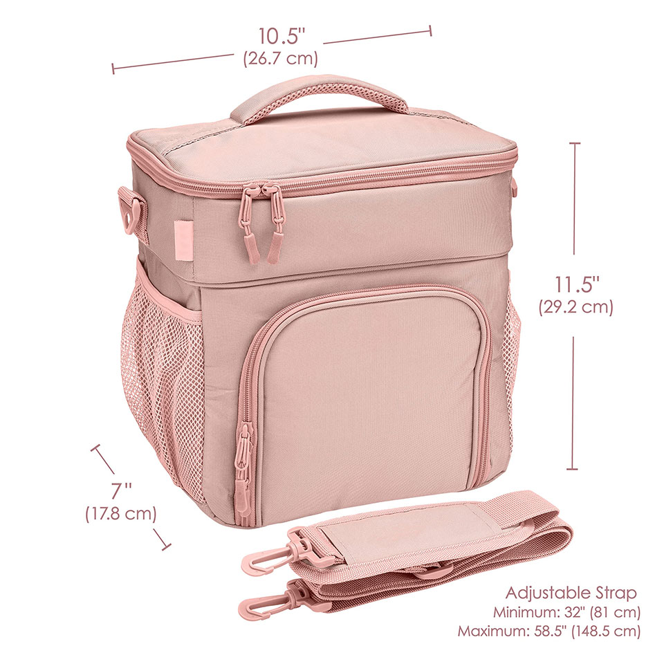 * PORTABLE, ERGONOMIC DESIGN: Made for easy transportation, the adjustable strap and padded handle make carrying the bag from home, work, the gym, and school easy and comfortable. An added exterior pocket is great for holding keys, IDs, utensils,