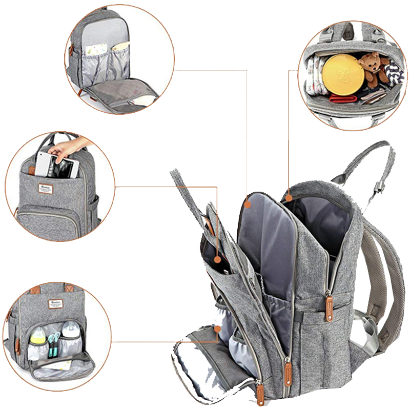 Pattern Type: grey Style: Single Package Material: Polyester, nylon 210D lining Brand Name: customized Feature: with USB, Anti-Theft Description: diaper bed bag Color: customized Dimension: 11.8*7.8*16.5inchor Customized Certificate: BSCI,Sedex,TUV,ISO9001 Sample time: 5-7 Days Sample charges: USD50 Warranty: 1 year against defect of materials and manufacturing OEM/ODM: Availalble Logo: Accept Customized Logo