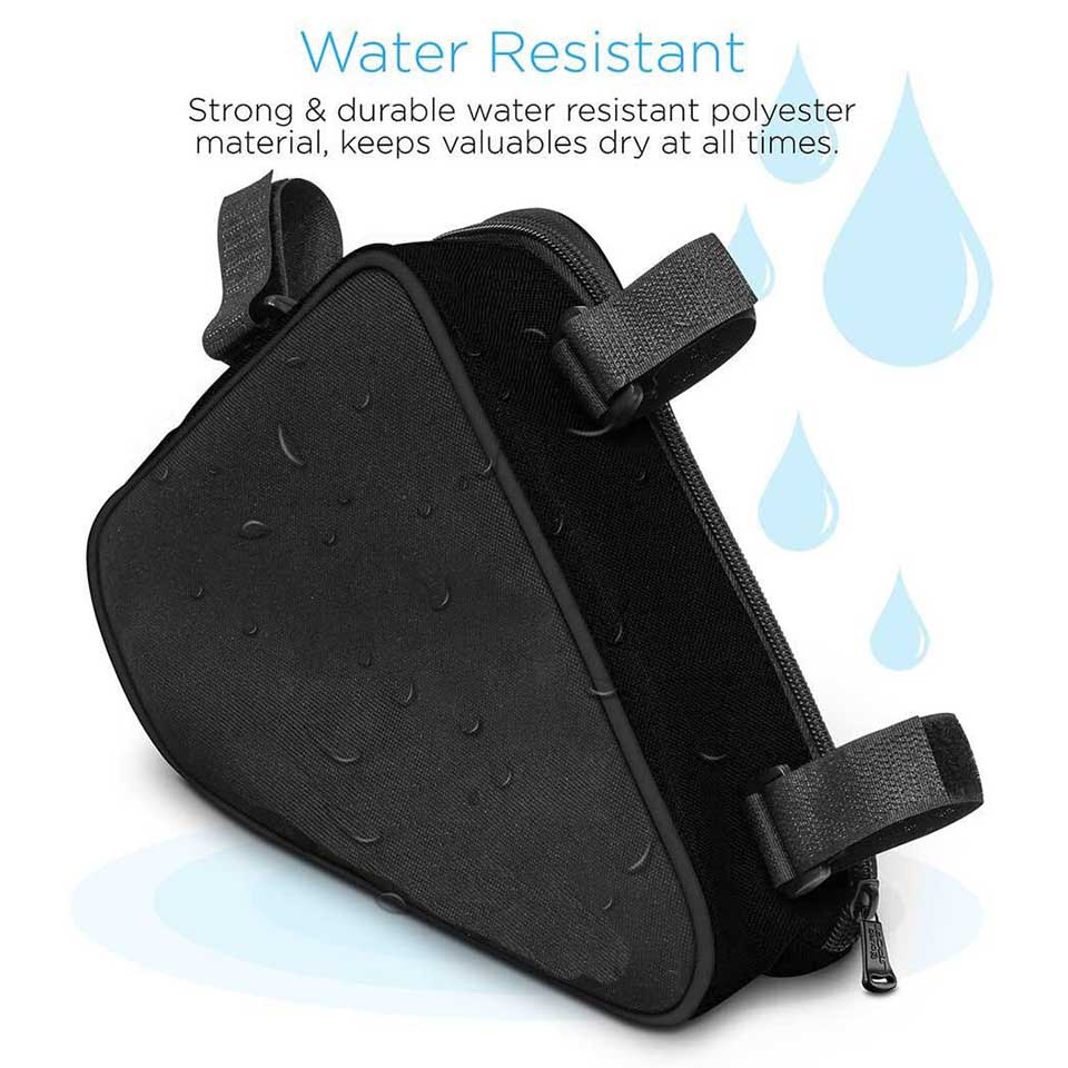 * Cycling saddle bag easily connects under bike top tube with adjustable velcro straps for custom fit