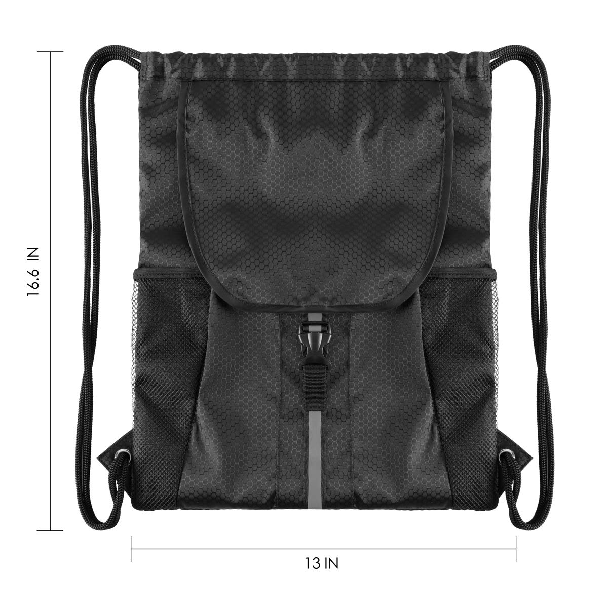 • LARGE SPACE ------The Gym Drawstring Bag has plenty of space, multiple pockets for different items, the main compartment can hold large items such as your clothes and books, wet and dry separation bags can put your wet towels, clothes or cosmetics, inner hidden pockets you can hold your wallet passport,key or mobile phone, etc. The external net bag can also put your umbrella,water cup or wet clothes,etc.