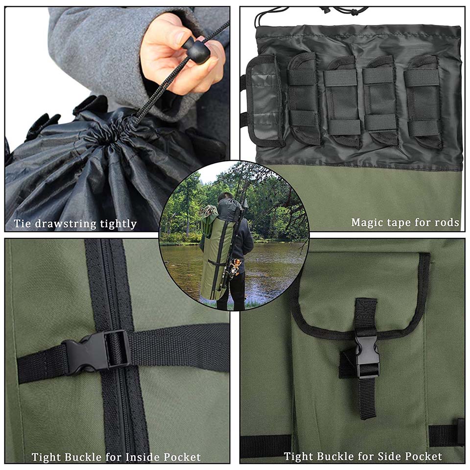 * The Rod Bag Pole Holder can holds 5 rods and reels on the outside. Fix it with a magic tape during outdoor fishing. Convenient for store and carry