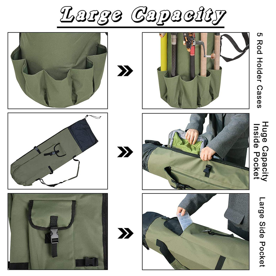 Waterproof Lightweight Multi-functional Large Capacity Fishing Rod Bag Pole Holder Fishing Rod Carrier Case