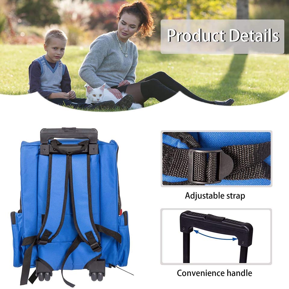 * Support & Handle Design: The pet roller backpack has removable plastic supports at the bottom to provide a comfortable support space for the animal. The multi-stage telescopic handle offers you different sizes for different age groups. * Mesh Design: The 3-sided mesh design provides your pet with fresh air and is suitable for long-term travel with animals. The open and close zipper makes it easy to get in, out and feeding your pet, while also allowing your pet to stick its head out for sight-seeing. * Airline Approved: pet backpack can meet most of your travel needs. With this backpack you can take your pet on most of the planes, except for individual airlines that you need to confirm individually. * Side Pouches & Pet Hasp Design: Large side pockets are perfect for safely storing your dog treats, toys and other essentials! There is a buckle inside to hold your pet in place like a seat belt to protect them from collisions and also keep them from running around. |