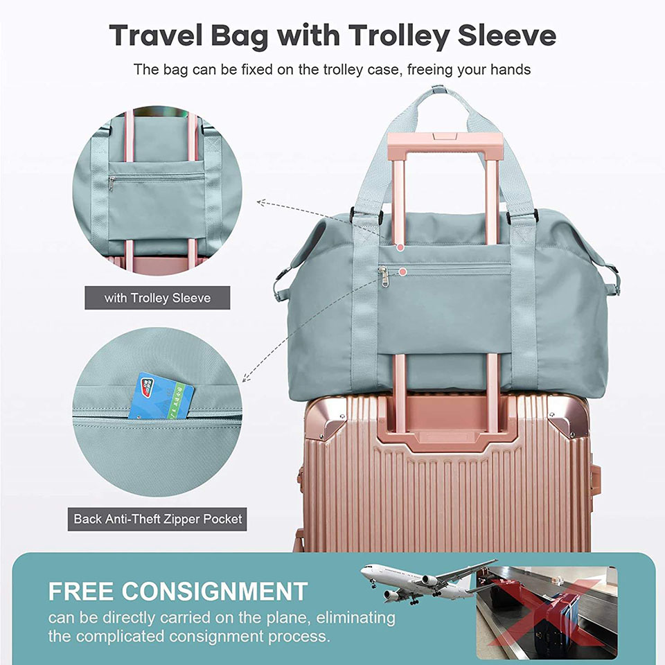Waterproof Weekender Carry On Overnight Bags for Women with Trolley Sleeve Travel duffel bag with Shoe compartment