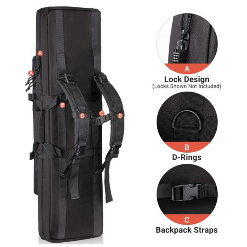 * Rifle Bag featured by durable water resistant polyester exterior, reinforced double stitching all the way around, 0.7 inch thick foam padding for comprehensive protection. A perfect rifle case to get your rifles, pistols and other accessories well organized, this bag is built to last, be rest assured to buy it.