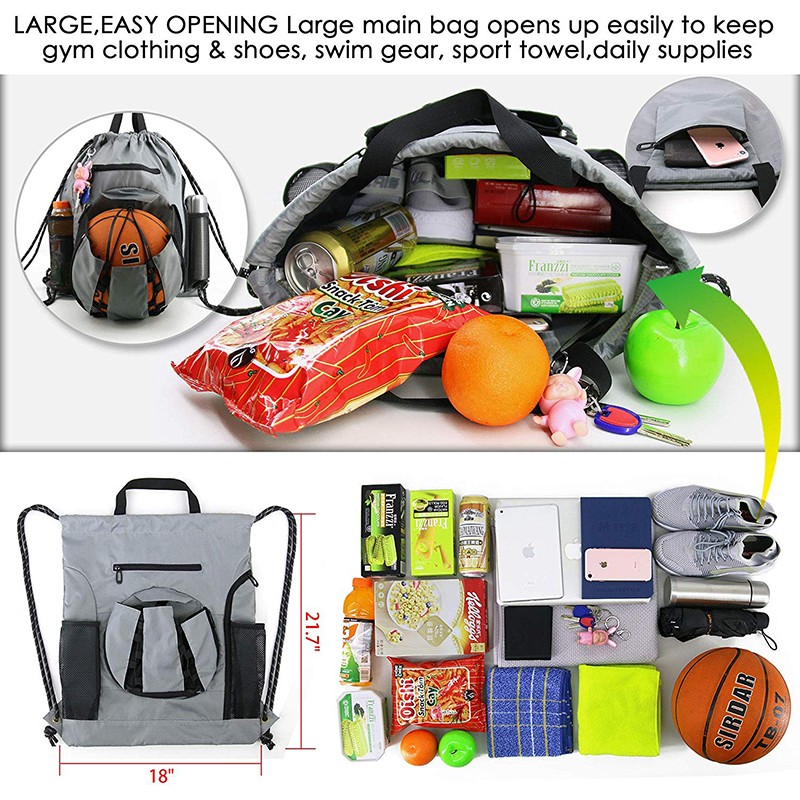Usage: Basketball Baseball Volleyball holder Product name: Drawstring Bag Description: sport outdoor Drawstring pouch Dimension: 18" x 21.7" Lining: 210D Certificate: BSCI,Sedex,TUV,ISO9001 OEM/ODM: Aceptable Sample time: 7days Sample charges: 50USD