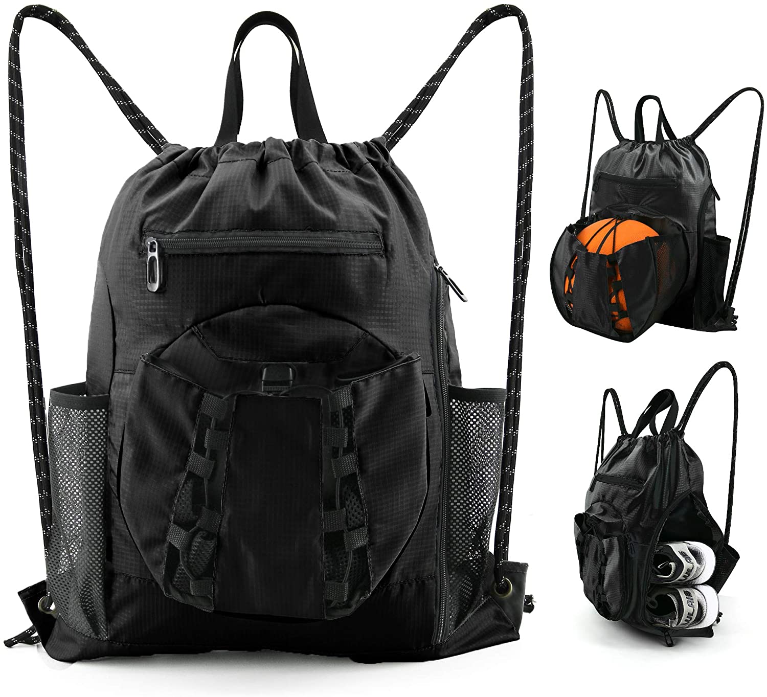 * CONVENIENT MULTI POCKETS: Storage Folding Ball Bag in front of sports bag for storing Basketball, Volleyball, Soccer, Softball, Football, Rugby, Handball, Golf, Tennis etc. The big shoe compartment on the right side of the backpack can hold gym shoes, The front zipper pocket and the inside zipper pocket on the backpack can hold small valuables such as wallet, cellphone, keys to prevent any pickpockets.