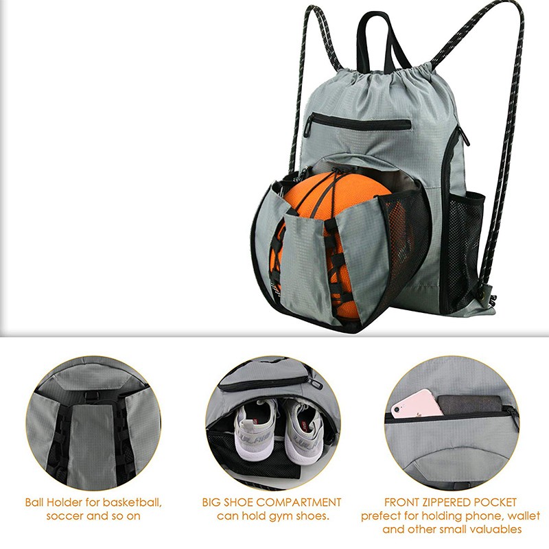 Wholesale Custom Logo sports gym bag Gym Backpack Drawstring Bags with Ball Holder for Basketball Baseball Volleyball